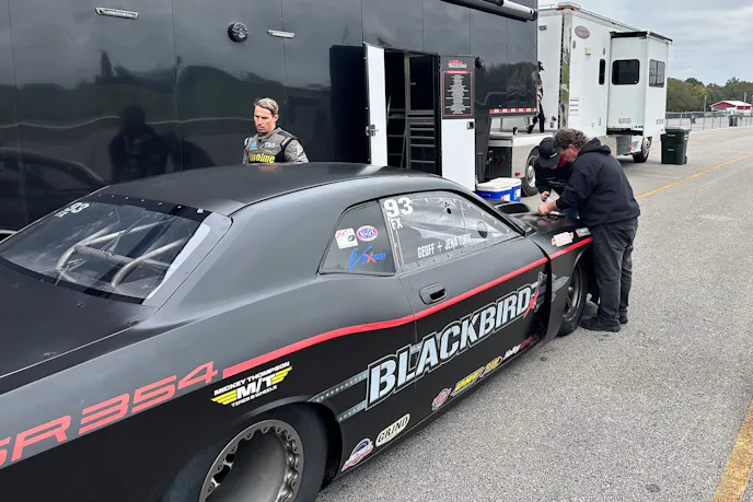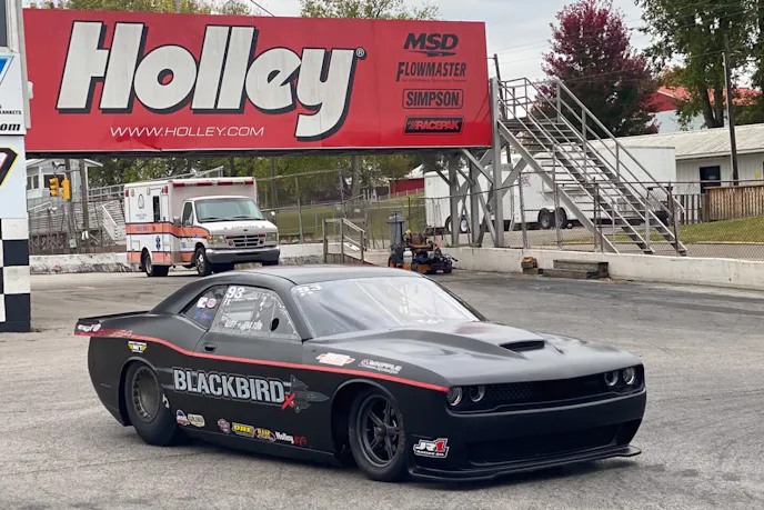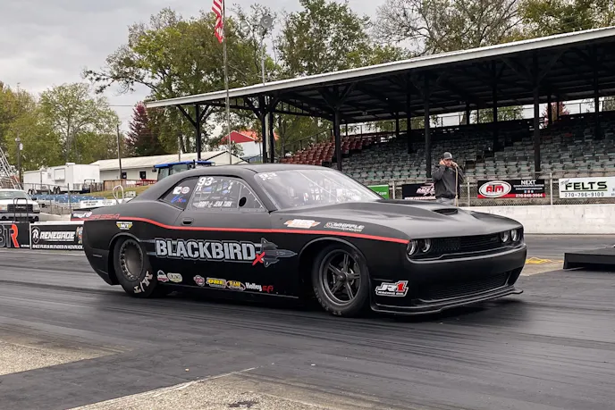 Journeyman drag racing pilot Alex Laughlin made history — albeit unofficially — on Tuesday afternoon, as he drove Geoff and Jena Turk’s BlackbirdX Dodge Challenger Drag Pak to the first known 6-second run by an NHRA Factory Experimental (FX) car, at Kentucky’s Beech Bend Raceway Park.