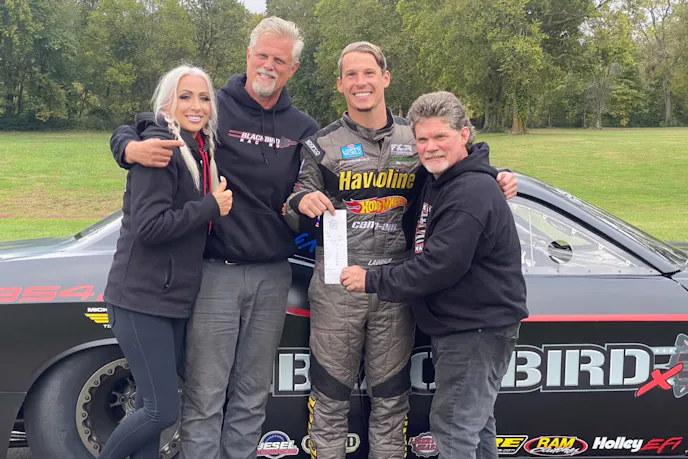 “As well, to the team at BES Racing Engines, Whipple Superchargers, RAM Clutches, Liberty’s Gears, Mickey Thompson Performance Tires & Wheels, Holley Performance Products for helping to create and sponsor the class and for their great products and support, Broc Porter and the team at Beech Bend Raceway for always working hard to accommodate our testing needs, and all those that encourage and support us along this sometimes difficult path. Thank you for helping a washed-up driver somehow make it to the sixes before 60.”