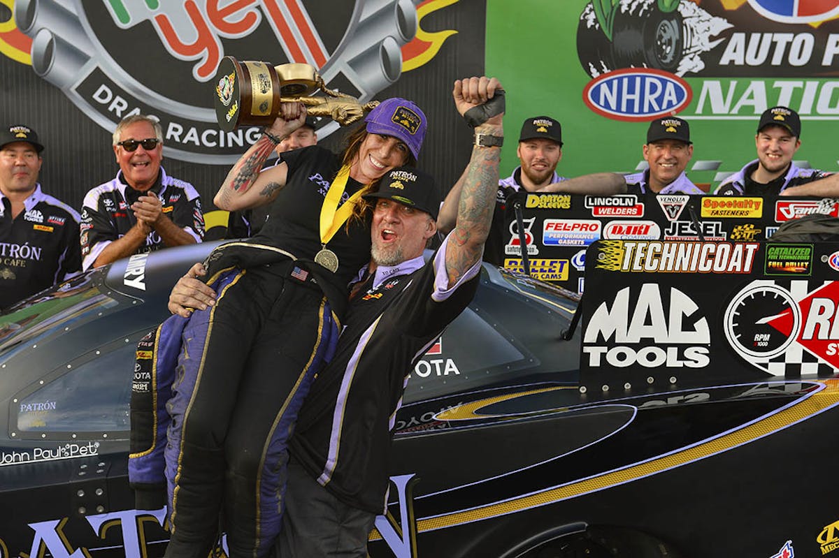 She became the 90th driver and fourth woman to earn a victory in the ultra-competitive Funny Car class. And of course, the signature Kalitta Motorsports mosh-pit ensued.