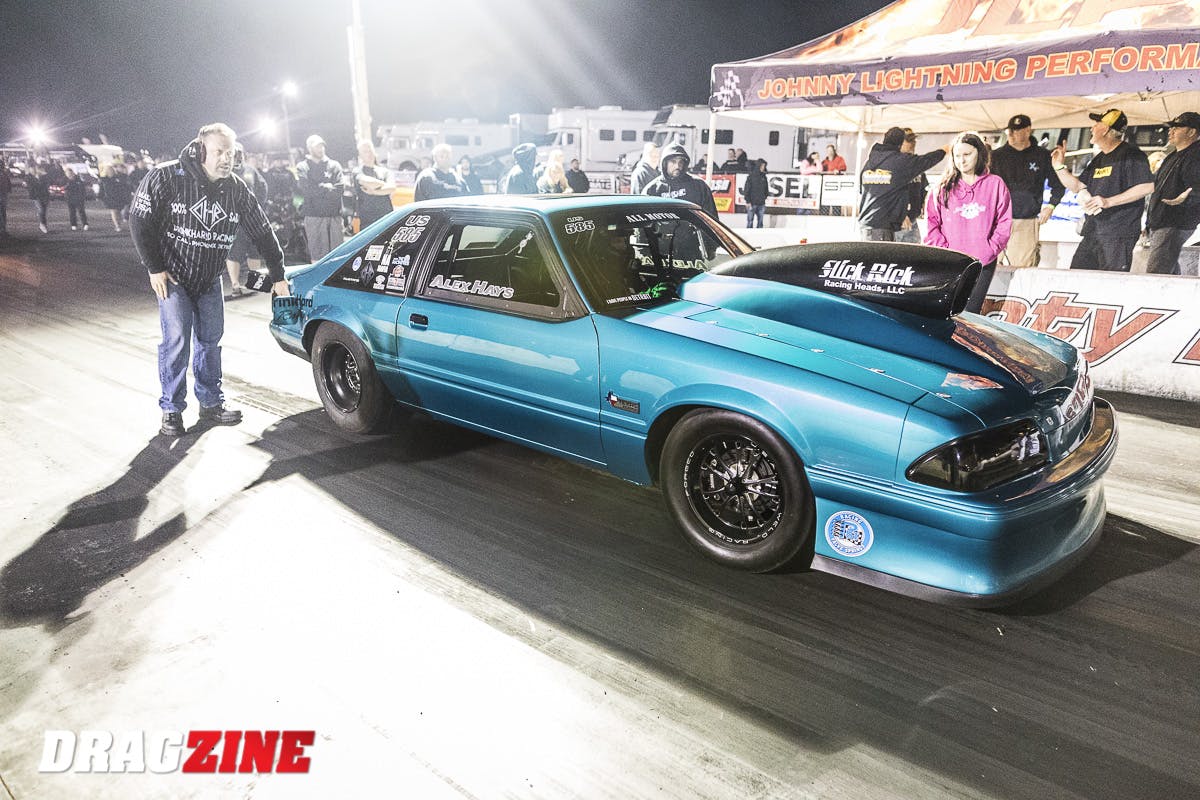 After scuffing a cylinder wall at the Yellow Bullet Nationals a year ago, Hays was ready to have Uratchko Racing Engines build a formidable new mill for his Mustang to begin an assault on the Ultra Street class. Hays got a set of Sr23 heads from Slick Rick Racing Heads and a Marcella Manifolds intake to top off the new engine that Uratchko built. A dyno failure that locked up the dyno caused damage the new engine and delayed his season, but when the engine was repaired Hays was ready.