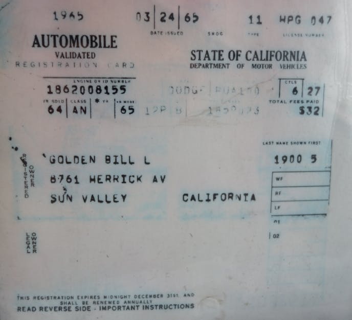 The original registration card for the No. 1 Little Red Wagon.