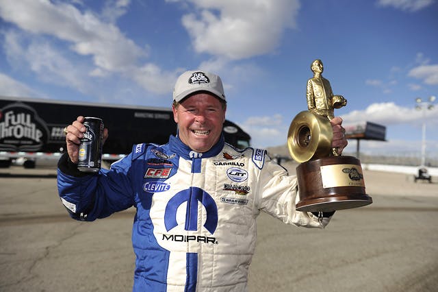 This championship goal, he said, “has been our dream for a long time, my dad’s dream when I was just a little kid to race Pro Stock. He never could really put the funding together. He was a very successful sportsman racer, but I got fortunate in business and we got to talking about it again after taking about 10 years off and just decided to go for it. But I can’t believe it’s been 17 years. But ever since then we have gone out there and dug tooth and nail with our Mopar stuff, and hopefully this year it’s going to pay off. “