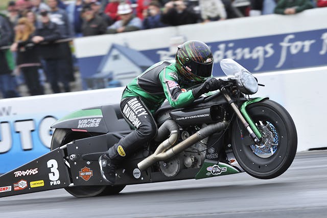 The Pro Stock Motorcycle chase comes down to the question of whether points leader Eddie Krawiec will win his third title or Vance & Hines Screamin’ Eagle Harley-Davidson teammate Andrew Hines will become the class’ first since Dave Schultz to earn four championships. Hines would pass brother Matt Hines, Angelle Sampey Drago, and John Myers.