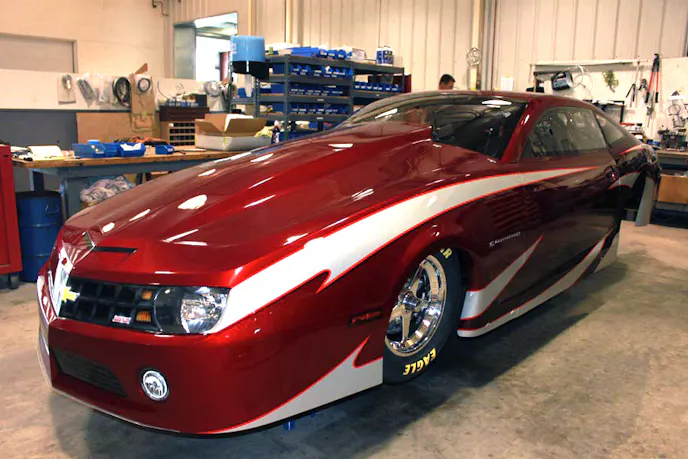 Here’s a sneak peek look at Anderson’s beautiful new Summit Racing Camaro out of the paint booth and receiving the final touches. If there were ever a body that demands the discontinuation of hood scoops, this is the one.