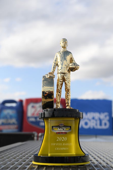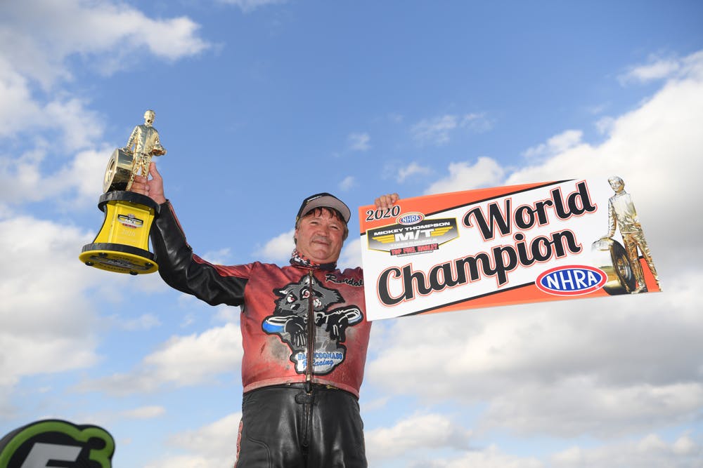 Randal Andras won five of the six Mickey Thompson Tires Top Fuel Harley Drag Racing Series events held during the abbreviated 2020 NHRA drag racing season, clinching his first championship in dominating fashion.