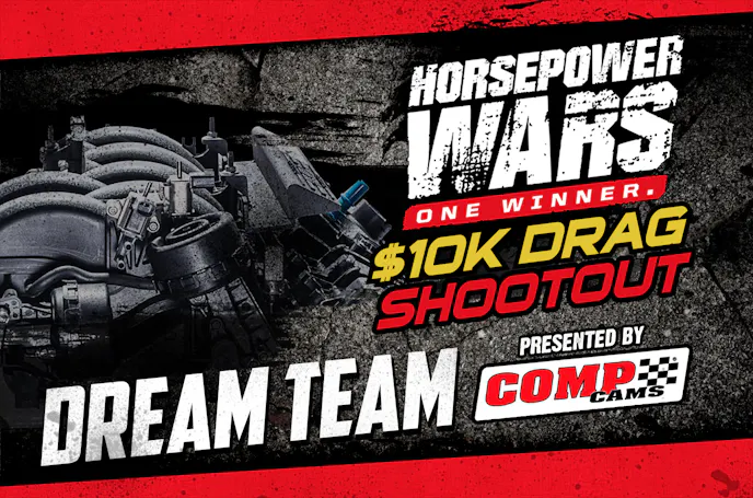 In the first of what will be many unique twists thrown into the Horsepower Wars $10K Drag Shootout, today we reveal the 10th and final team — which will fill the fourth spot in the 10-day build-off: the “Dream Team” presented by COMP Cams . And that team may include YOU!