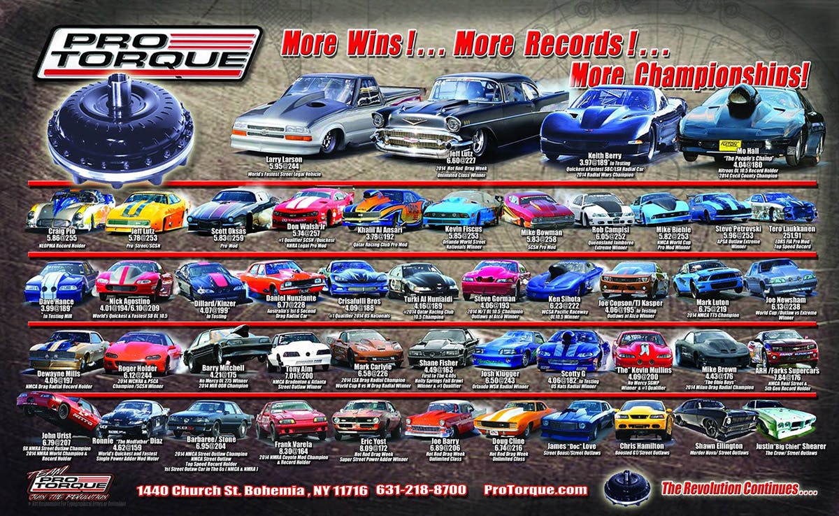 In what has become an annual tradition for the renowned torque converter manufacturer, Joe Rivera and his team at ProTorque have created and finalized yet another “Team ProTorque” poster, featuring all of the champions, race winners, and world record setters that rely on their converters, covering virtually every corner of the heads-up drag racing world.