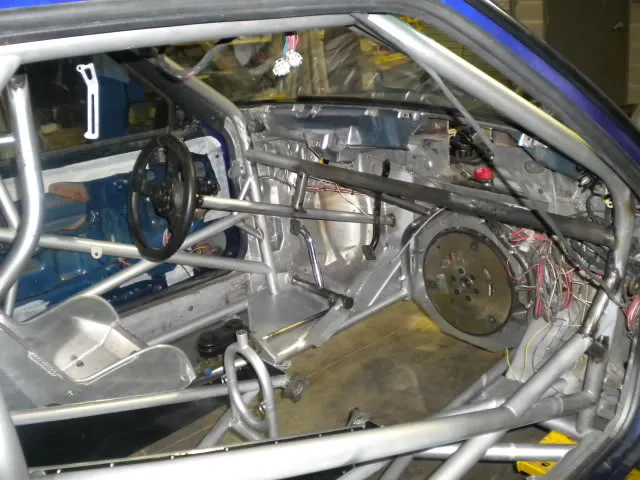 Anthony New, a self-employed Masonry owner from Lincoln, AL has a sharp new (to him) Fox body Mustang that is receiving the finishing touches at his shop before being placed on active duty. The Mustang was originally built by Zartech Race Cars in 2000 for Terry Woodson and had seen very little track time before Anthony acquired it from a racer in Las Vegas. It features a 25.2 chassis, with Santhuff struts, shocks, and four-link, along with several components from Vanishing Point Race Cars. All of the tin work and wheel tubs were completed by Jim Lawson at Venomous Motorsports.