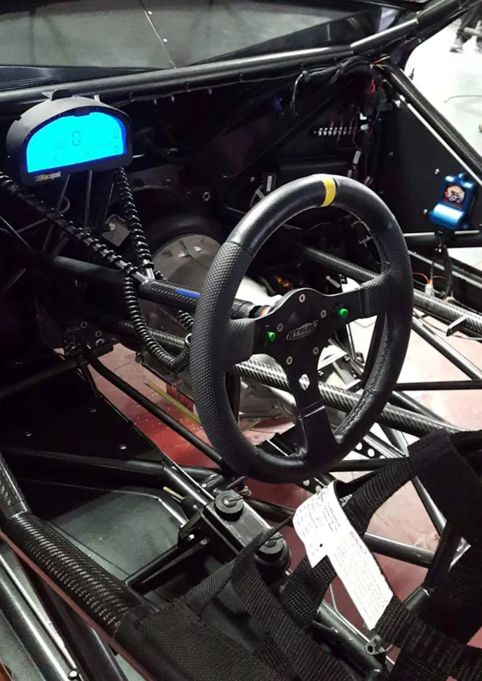 The backlight of the Racepak IQ3 will illuminate the driver’s compartment for Carlyle to see all the data.