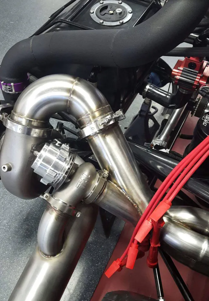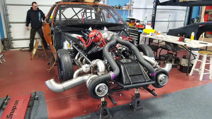 Taking a look under the hood, Stevens, Jr.'s craftsmanship is nearly unmatched. Check out the tedious bends on the turbo piping.