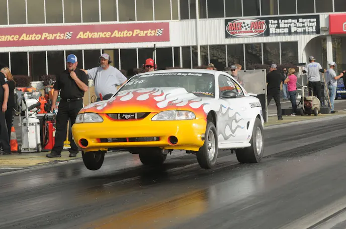 While she had taken some time off in the past few years to focus on her family, Conway Lang was back behind the wheel at the second event on this year’s NMRA tour, the 11th Annual Scoggin-Dickey Parts Center NMRA/NMCA All-Star Nationals in April at Atlanta Dragway. There, she earned her first trip to the Aerospace Components Winner’s Circle in the tough-as-nails category with a 10.24 on a 10.20 dial in her Mustang motivated by a 410 cubic-inch Ford engine built by her father and topped with Edelbrock Victor Jr. heads and a Holley carburetor she purchased from fellow racer Saul Walker.