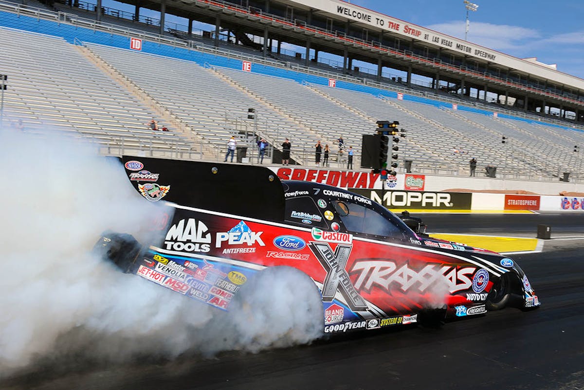 John Force Racing had a successful day of testing at The Strip at Las Vegas Motor Speedway. Most notably Ashley Force Hood renewed her NHRA Funny Car license driving Courtney Force’s Traxxas Ford Mustang Funny Car. She made four passes posting times of 4.11, 4.04, 4.01 and 4.05 seconds. There is no timetable or schedule for Force Hood to return to full-time or part-time racing. The goal of the test session was not just to renew Force Hood’s license but to also provide the 18-time Funny Car championship team with an in-house experienced driver in the event a current driver was unable to participate in an NHRA national event.