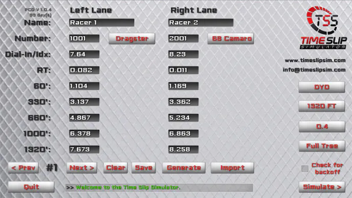 Kym Oberauer has developed the Time Slip Simulator, that he calls a training tool for drag racers. The program replays a drag race based on the information supplied on a timeslip, with a completely 3D, video game-like interface with several different camera angles. Oberauer has added every feature one could need to simulate a drag race, including 660, 1,000, and 1,320-foot distances, .400 and .500 full and pro trees, margin of victory calculations, and so on. And as you’ll see in the video, he’s even programmed in the ability for the software to detect the drivers “whomping” the throttle on the top end, based on their time slip data.