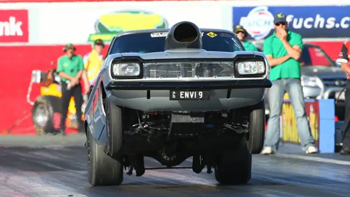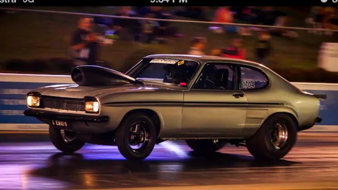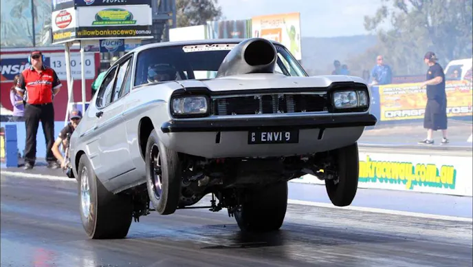 Going under the hood, this definitely isn’t your grandma’s Capri! Packing a Big Block Chevrolet built by Sunset Performance, this little Ford can move down the eighth-mile in a hurry. But he wasn’t done. With the help of Nitrous Outlet and a custom tune by Kevin Neal from Neal Performance Innovations, Stuart Henry has one of the fastest 275 Drag Radial cars in Australia.