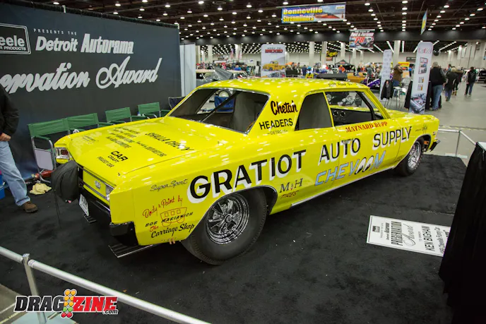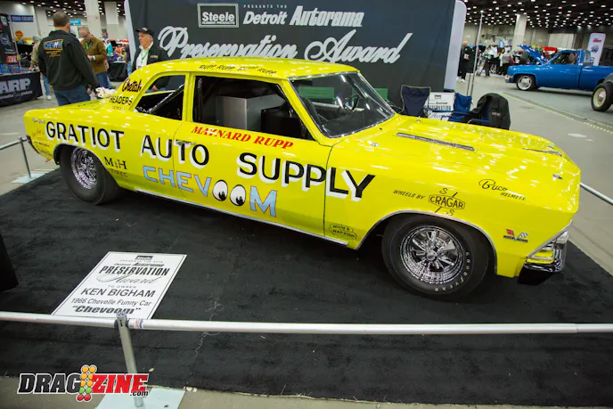 Maynard Rupp was the 1965 NHRA Top Fuel champion and had the idea to inject Top Fuel horsepower into the fledgling Funny Car movement that was happening. What Rupp created was a 1966 Chevelle known as “Chevoom” that featured a full tube chassis and rear-mounted 402 cubic-inch Hemi with a blower. The car became very famous after it debuted and won both the Ridler Award and Best Engineered Award at the NHRA Winternationals. This car is packed with drag racing history and is just really cool to look at from any angle.
