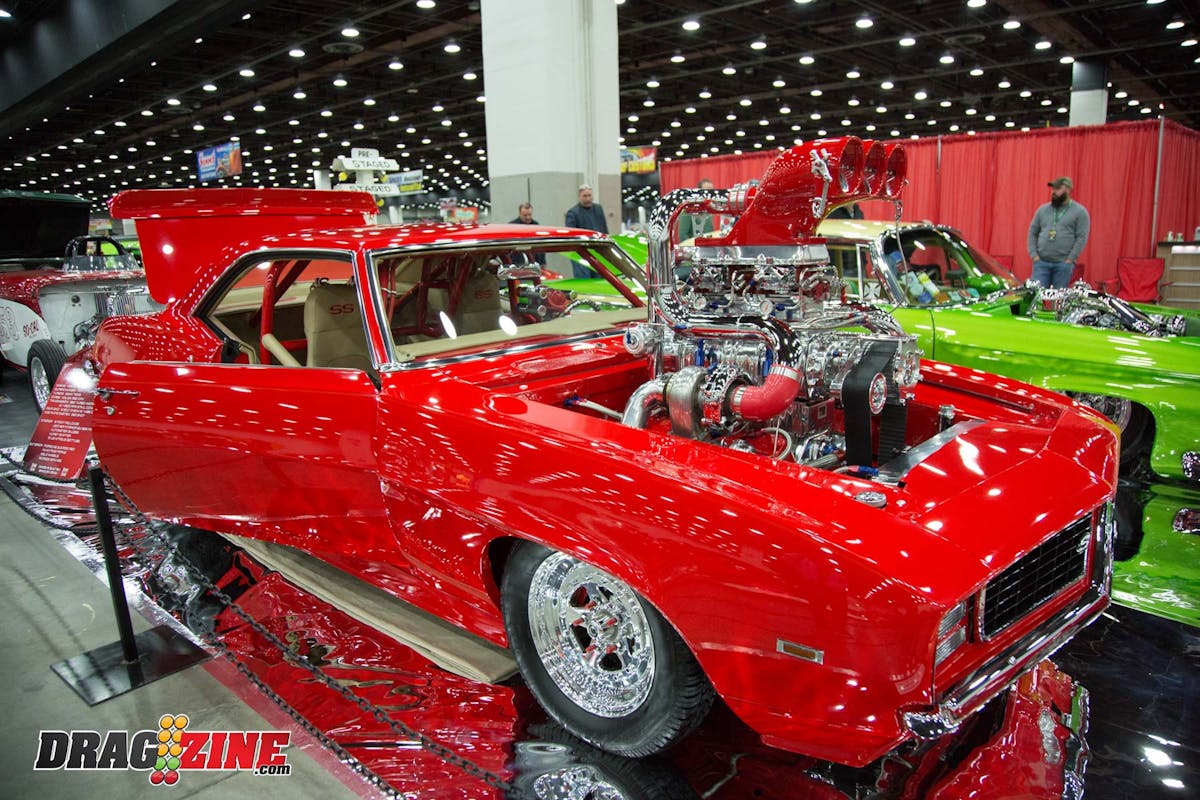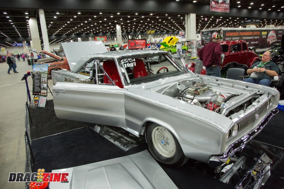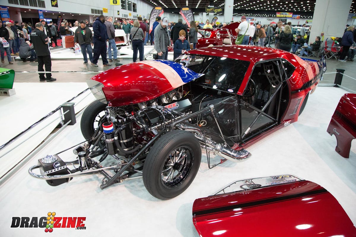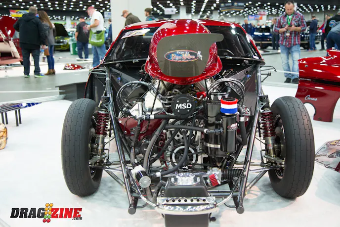Kevin Bidwell’s 1976 Chevy Vega really caught our attention as we wandered the halls of the Cobo Center. The car known as “The Reaper is not only ultra-clean, it has 555 cubic-inches of big-block Chevy under the hood with a couple kits of nitrous for good measure. The car has a full tube chassis that features a ladder bar suspension in the rear.