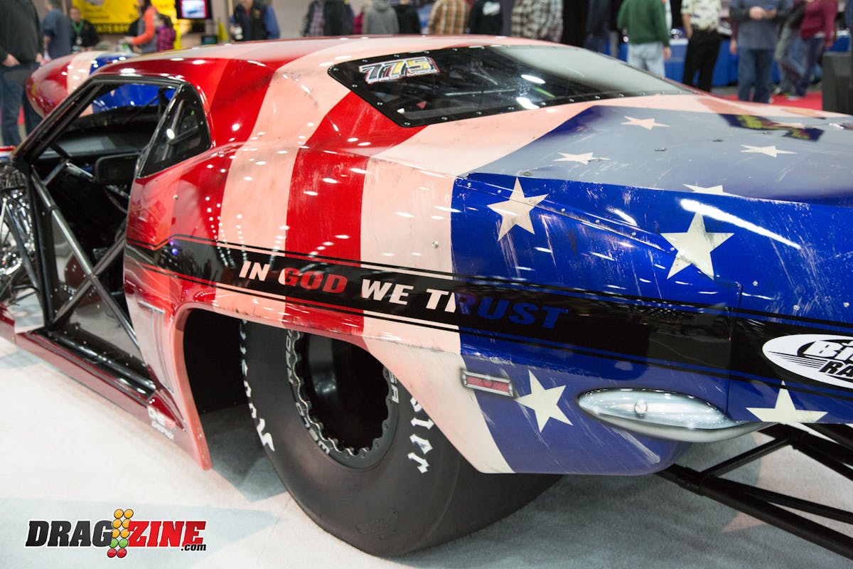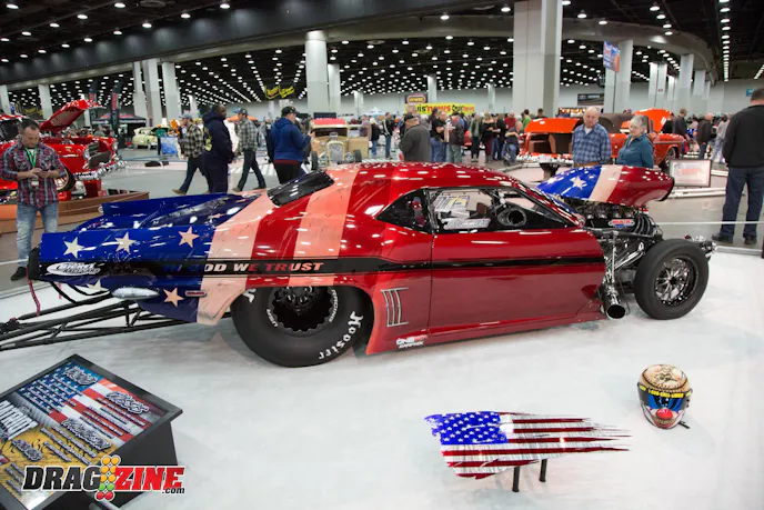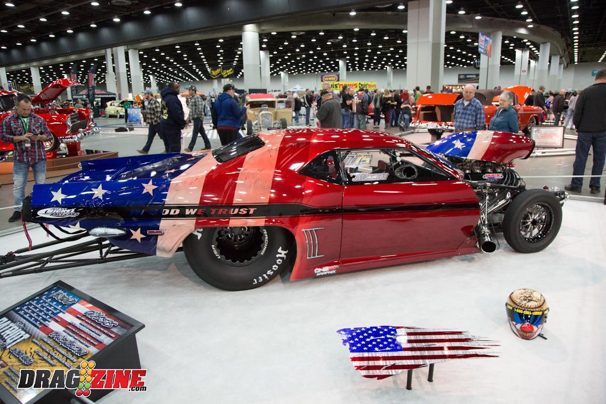 Keith Jackson’s 1969 Pro Mod Camaro known as “The Patriot Missile” was a total show-stopper at the event. At first glance, you would think this car has an elaborate wrap depicting the patriotic theme … but you would be wrong, … that is all paint from Bruce Mullins. The Jerry Bickel Race Cars chassis has 872 cubic-inches of Buck Racing Engines power between the fenders with four stages of Speedtech nitrous to give it some serious rip. With this level of detail and paint on the Camaro Jackson will get a lot of attention at the track when he debuts the car this season.