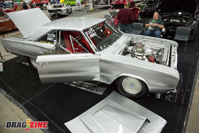 Mike Ricketts’ 1967 Dodge Coronet is one of 55 factory Super Stock drag cars from Dodge and retains all its classic lines. The Competition Components-built Hemi cranks out 886 horsepower on pump gas and fills the engine bay nicely of this classic Dodge. This car has a bit of history, as well, since its previous owner, Jack Thomas, won class at the 1967 U.S. Nationals behind the wheel.
