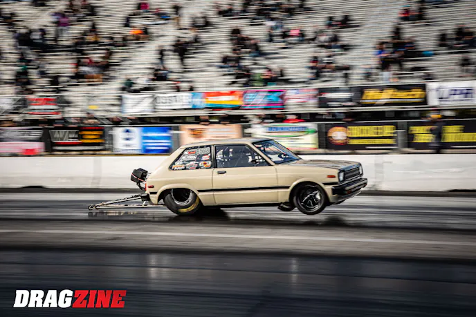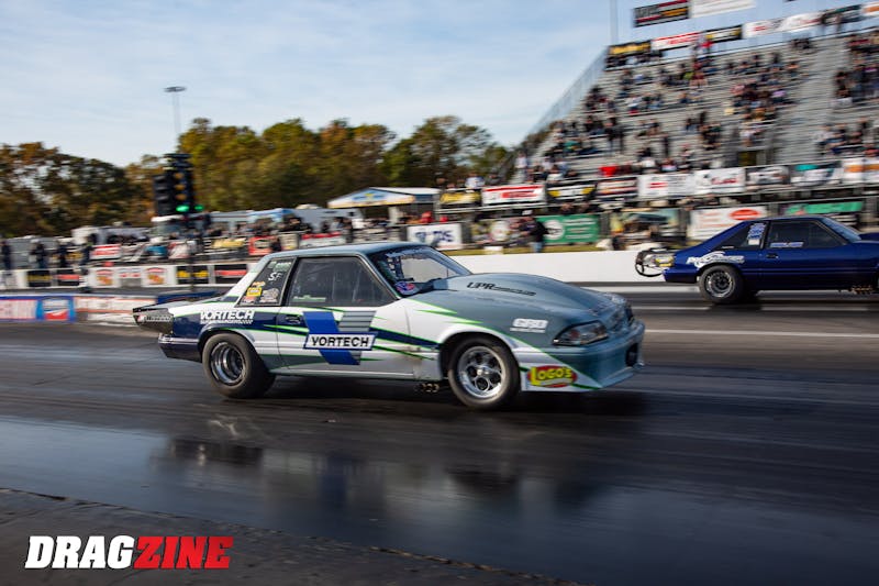 Steele’s Xiled Drag Cars-built Mustang is powered by a stout Coyote engine from TKM Performance. The engine uses a set of OEM Ford cylinder heads that have been worked over, along with a Plazmaman intake to feed the boosted air into the engine from a pair of Forced Inductions 76mm turbos. Steele’s transmission of choice is from Tick Performance, and it has been paired with a clutch from Advanced Clutches. A Fab-9 rearend has the unenviable task of transferring all that horsepower to a set of Mickey Thompson tires each time Steele mashes the loud pedal.