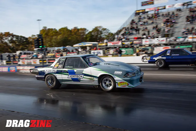 Joel Steele shocked the world last month when he blasted into the 6-second zone ripping gears in his Coyote-powered Mustang at FL2K. The 6.98-second pass made Steele the first person to record a 6-second elapsed time with a domestic using a true H-pattern shifter. Steele took things to a whole new level at the World Cup Finals by smashing the H-pattern record with a blistering 6.81-second pass.
