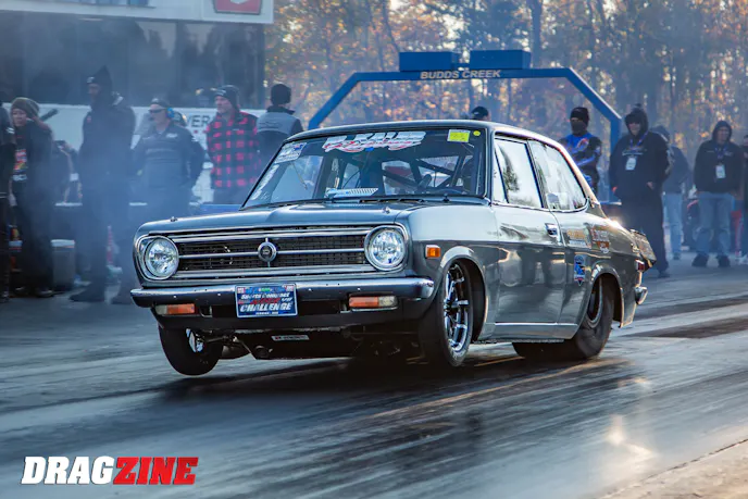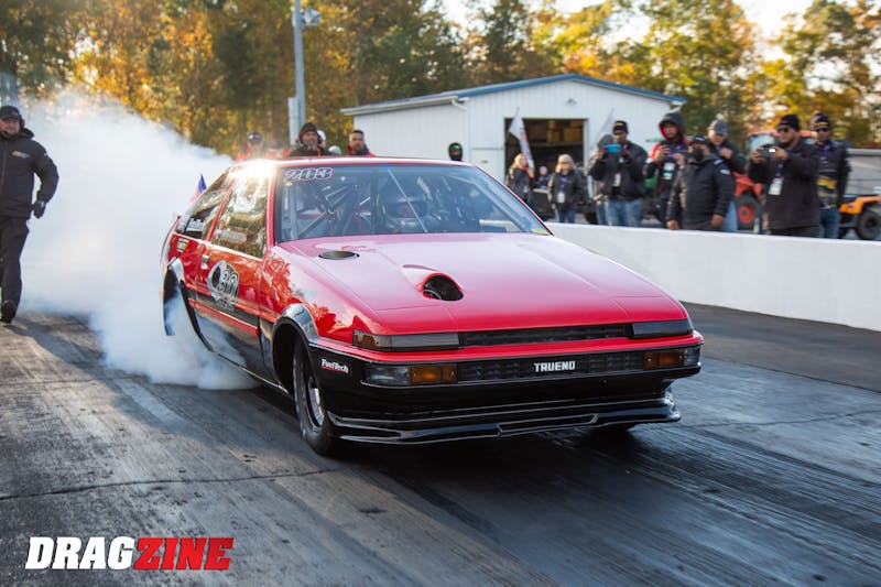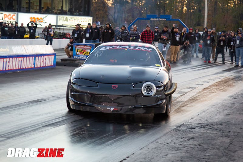 Steele’s Xiled Drag Cars-built Mustang is powered by a stout Coyote engine from TKM Performance. The engine uses a set of OEM Ford cylinder heads that have been worked over, along with a Plazmaman intake to feed the boosted air into the engine from a pair of Forced Inductions 76mm turbos. Steele’s transmission of choice is from Tick Performance, and it has been paired with a clutch from Advanced Clutches. A Fab-9 rearend has the unenviable task of transferring all that horsepower to a set of Mickey Thompson tires each time Steele mashes the loud pedal.