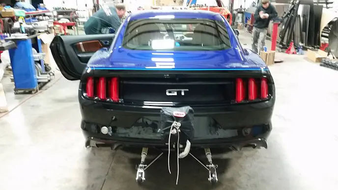 Under the hood sits a 5.0 liter Cobra Jet Coyote engine with a Whipple supercharger providing ample amounts of boost. Jimmy LaRocca and Bongiovanni are in charge of the collaboration and trackside tuning, along with crew chief, Ricky Hertzog. Travis Quillen from Quillen Motorsports Engineering was hired to do the tedious job of wiring the extravagant Cobra Jet with functional headlights, taillights and even the lit Pony that shines on the ground when you open the door Quillen also is providing tuning assistance using the FAST engine management system and his wealth of knowledge and experience.