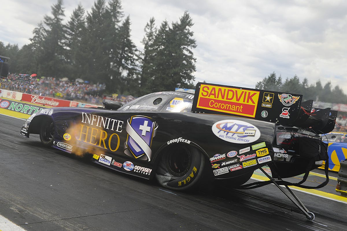 However, Beckman and Prock, who have won four times this season and the first two races of the NHRA’s Western Swing, weren’t done just yet. On Saturday’s fourth and final session of qualifying at the Northwest Nationals in Seattle, Beckman dropped an absolute bomb—arguably one of the most shocking passes the sport has seen in quite some time—with a pass of 3.912-seconds at 322.88 mph to pace the ultra-quick field by a country mile. John Force, who was in the opposing lane to Beckman on the monster run and posted a usually-impressive 3.99 to qualify third, looked like he was dragging the parachutes in relation to the Infinite Hero Dodge.