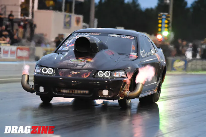 David “Little Evil” Pearson and his wife, Tracy rolled their new 1993 Mustang into the water box at South Georgia Motorsports Park (SGMP) for some Pro 275 racing action during No Mercy 10 and immediately made an impact. Whether the clocks are on or off, the Pearsons have always been fast and they backed that up once again at No Mercy, as Little Evil runnered-up at the event and along the way set the class record with his new machine.