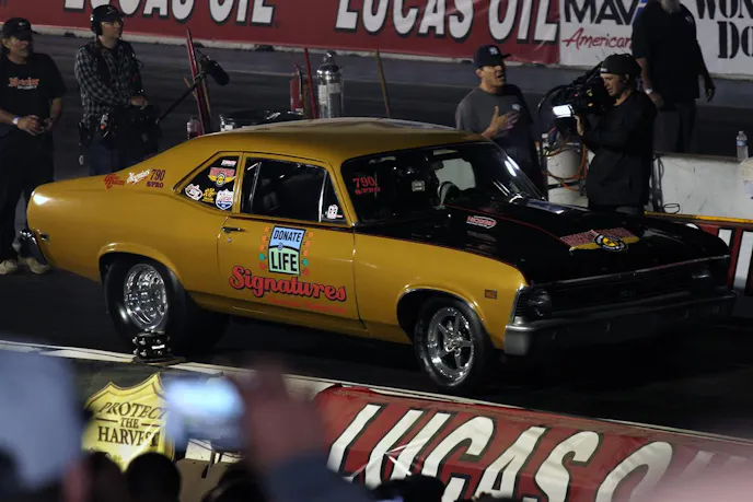 Widen, a lung transplant recipient, has traveled across the country racing as a symbol of organ and tissue donation and transplantation with his Donate Life/Signatures Across America team. Widen’s 1969 Nova SS, which he proudly races today, was donated to the project by Teri Clark of Memphis, Tenn. in 2011 and was formerly campaigned by the late Johnny McPeake, who was a Foot Brake world champion in the car and an organ donor upon his passing in 2005.