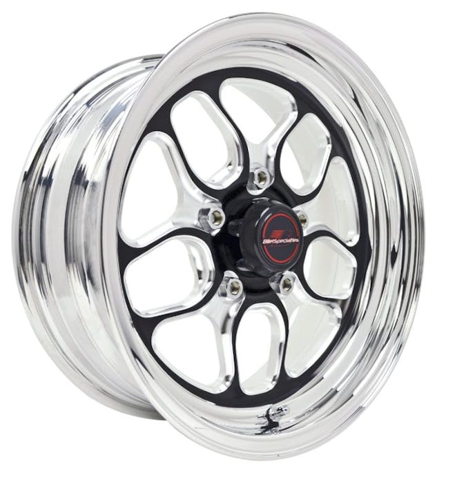 Billet Specialities confirms the Win Lite wheel is five percent lighter than the already lightweight Street Lite, due in large part a machine recessed bolt pad on the backside of the wheel center and an optimized design of the spokes. In all, Billet Specialties estimates around a one pound savings on comparably-sized wheels, with a 15 x 10 wheel, for example, tipping the scales at 15.4 pounds, compared to 16.2 pounds for a Street Lite of identical width and circumference.