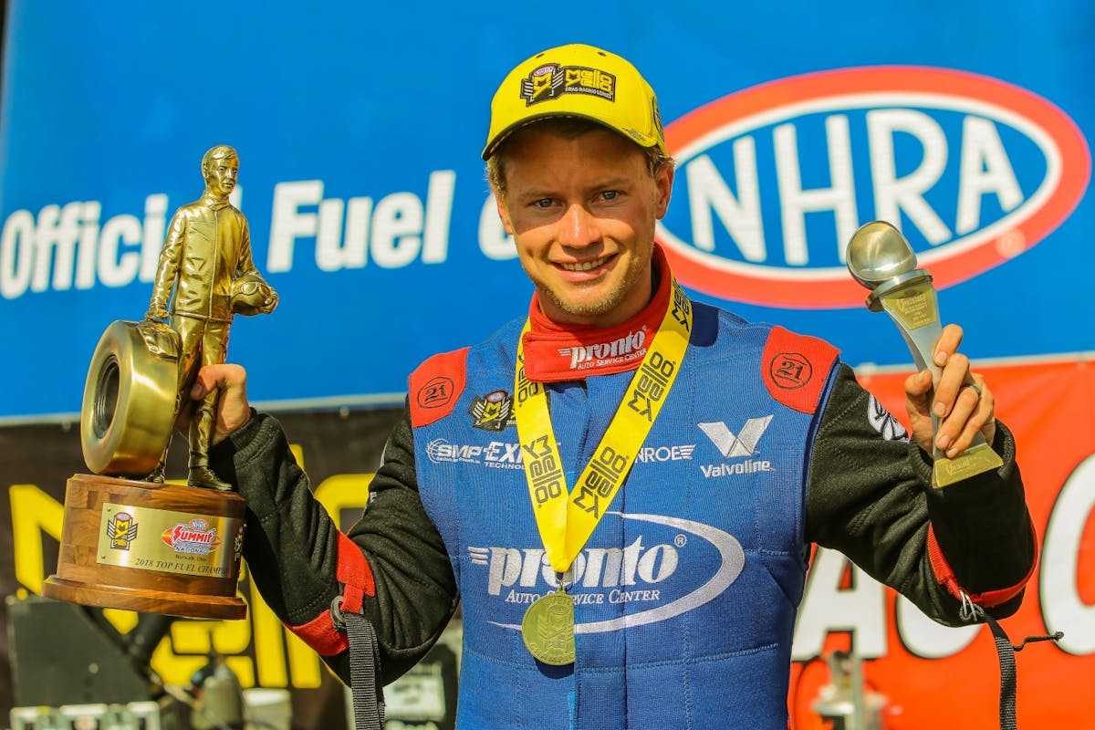 Pronto Auto Service Center driver Blake Alexander became the 105th different driver to win in NHRA Top Fuel Sunday afternoon when he defeated Terry McMillen at the Summit Racing Equipment NHRA Nationals. Driving for team owner Bob Vandergriff, Alexander was appearing in his second final round this season in Top Fuel.