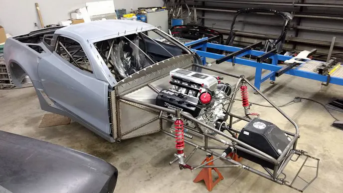 This one of a kind carbon fiber C7 body is comprised of panels from Skinny Kid Race Cars and remains within factory specs. The nose of the car is also a custom piece designed to look more like factory than the typical stretched version you’d see on a Pro Modified car. For paint and body, the Copson’s shipped the car over to Bucky’s LTD in Martinsburg, West Virginia, where Travis “Tuki” Hess, wrapped up the paint job with some flames to really set the look of this car apart.