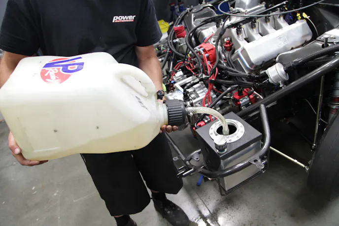 Unfortunately, our weekend “high” and “low” both came on the same lap, as right after the boards lit up with the 7.52 elapsed time, the car nosed into the sand at the end of the track, doing some minor cosmetic damage to the new fiberglass nose and covering many of the intricate parts and pieces under the hood in the driveline with sand.