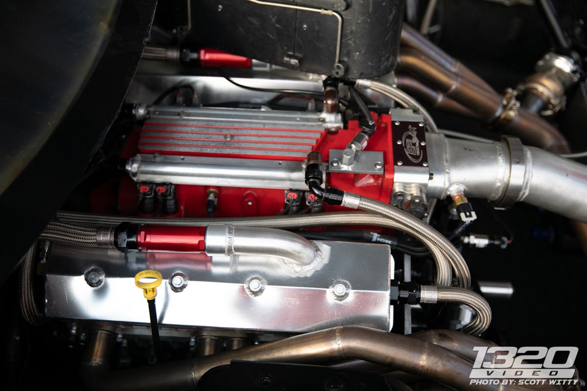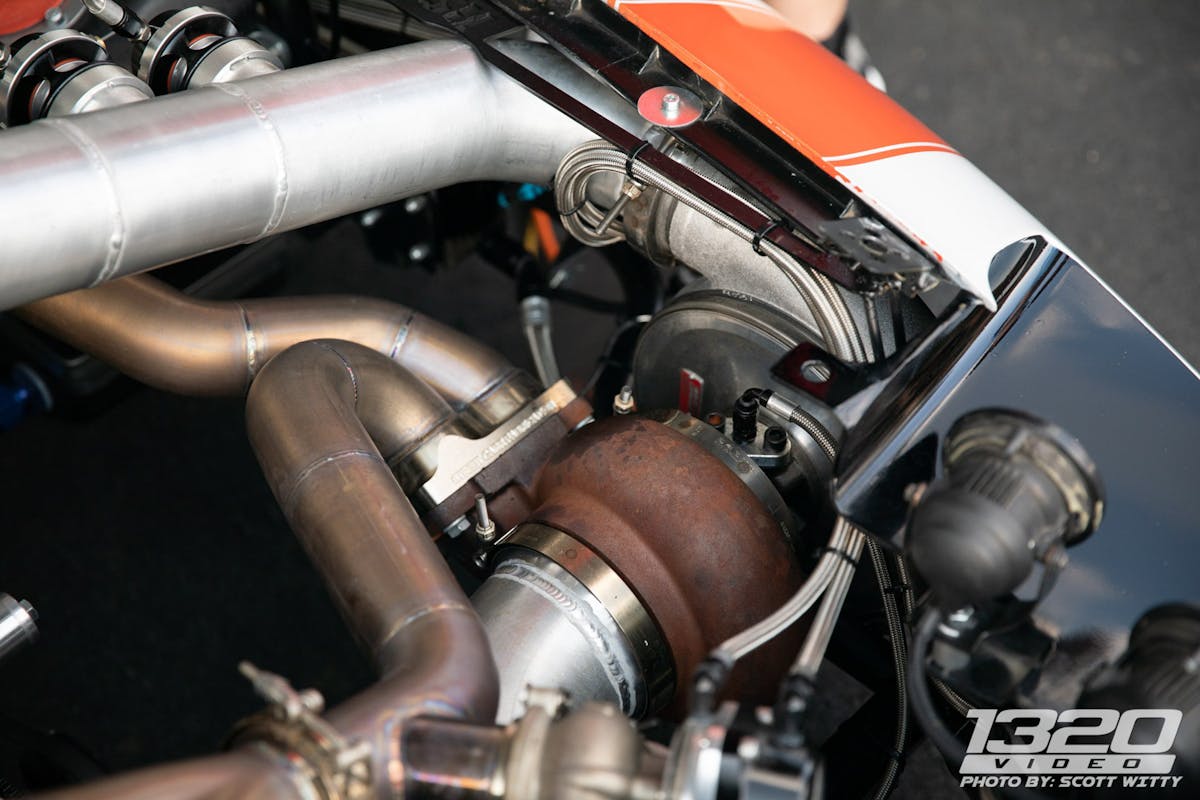 For a turbo system, Tick turned to Rock Solid Motorsports to create a real work of art. The turbo of choice is a Gen 2 CEA Precision 8891 unit that works with a pair of Turbosmart BOVs and 50mm Pro Gate wastegates. Atkins doesn’t use an intercooler; instead, M1 methanol is used for fuel and is pumped through a set of 550-pound Billet Atomizer injectors by an Aeromotive 12 series belt-driven fuel pump. Everything on the car is controlled by a Holley Dominator ECU, and the Dominator also acts as the main form of data acquisition.