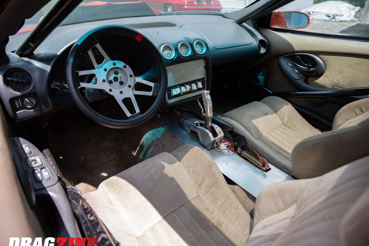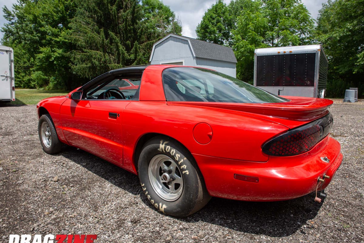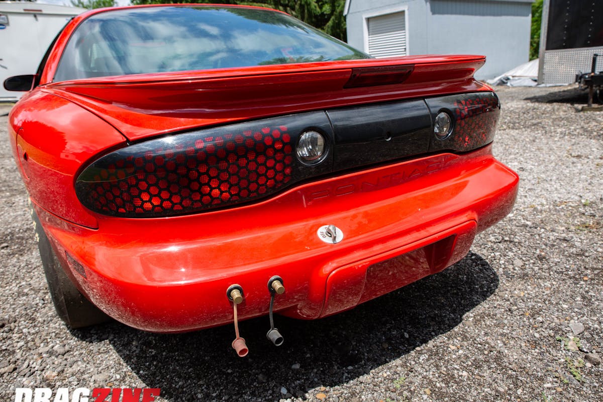 The weapon of choice is a 1996 Pontiac Firebird that’s seen grudge racing action, and it’s the perfect starting point for this project. The car already has a stout 8.50 certified roll cage, is fully wired, and has been plumbed for racing duty. Under the car is a Moser 9-inch rearend, aftermarket lower control arms, and torque arm, too. Number Cruncher has also been mini-tubbed, so we have plenty of room to fit larger slicks or radials under the Pontiac.