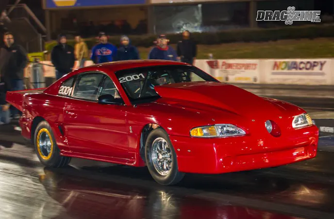 After checking the car over and doing a little pre-season testing at Memphis on 275s, Medlock shocked everybody in the area when he unloaded the familiar Mustang at Outlaw Street Car Reunion III with the skinny 235s bolted to the rear end housing and sporting an MX235-legal size turbocharger.