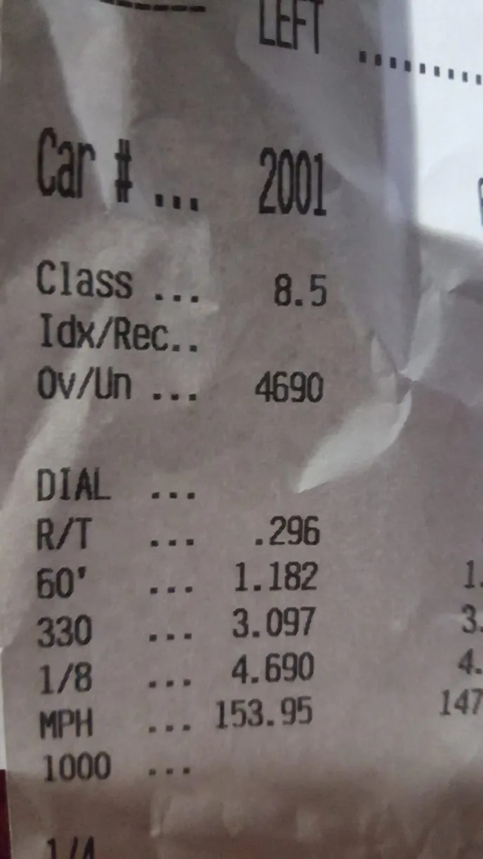 Coming off the trailer on a 125-plus degree track temperature, Medlock rocked a 4.76 on the board and shocked the whole field. As the sun fell, temperatures lowered, and the track got tighter, Medlock threw a big tuneup in the Kuntz & Company powerplant under the hood and the crowd stood wondering what was coming. Carrying the front wheels well past the 60-foot mark, never pedaling, the front end sat down easily and a few seconds later, the scoreboards lit up to the tune of 4.690 at 153.95 mph!