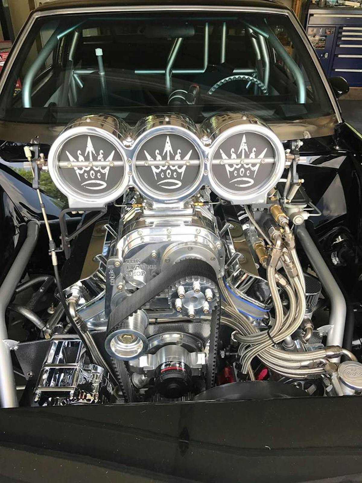 This wild Malibu hardly needs to do a burnout to get attention. As soon as Brandon fires the engine it can be heard from quite a distance away, and if the blower surge doesn’t grab your attention, something about this car will. The slick-black paint and shiny injector hat sticking up in the air contrast nicely, and the car’s stance is perfect, sitting down nice and low with a set of 315 Mickey Thompson drag radials tucked up into the wheel wells.