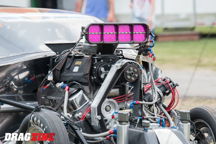 For 2017, Lewis commissioned Larry Jeffers Race Cars to build an immaculate 1957 Chevy Bel Air Pro Mod. Powering the new car is a Miner Brothers engine that uses M5 for fuel, and gets its 65 pounds of boost from a giant PSI C-rotor screw blower that’s 128 percent overdriven. Backing the motor is a Bruno/Lenco combination with a converter from Neal Chance Racing Converters. The timing for the motor comes from a PowerGrid MSD unit with a DMPE Fuel Management System making sure it’s getting plenty of fuel. The finishing touch of the car is an eye-catching wrap from Chris Davis at Kryptonite Kustomz that gives the car a unique look.