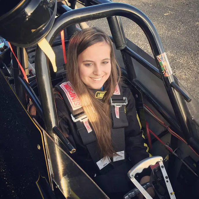 Having grown up around drag racing, Moller began racing Junior Dragsters at the age of eleven. She later competed behind the wheel of a sportsman Mustang, a Super Pro class Chevy Vega, her father’s alcohol-burning Corvettes West dragster, and even her street-legal Corvette. She licensed in a Larsen Motorsports jet dragster in 2013 and began her professional exhibition racing career in 2014.