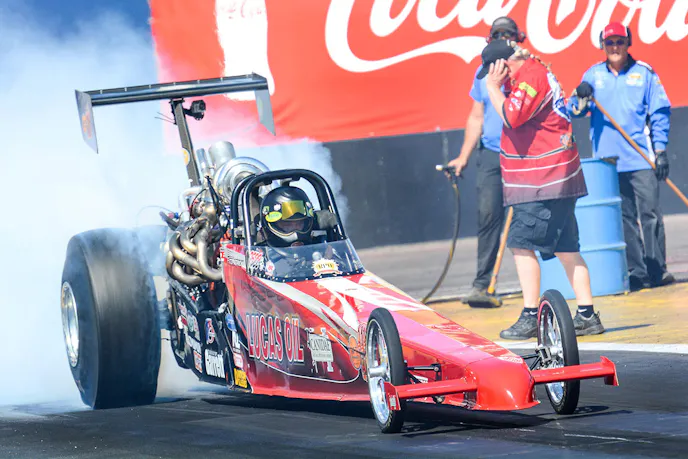 Fitzpatrick had world-renowned tuner and friend Shane Tecklenburg on hand to help iron the car out for its hoped-for trip into the fives, and his presence certainly paid dividends; the team parked their Lucas Oil-backed dragster second in the huge 71-car field with a career best 6.036 at 235.06.