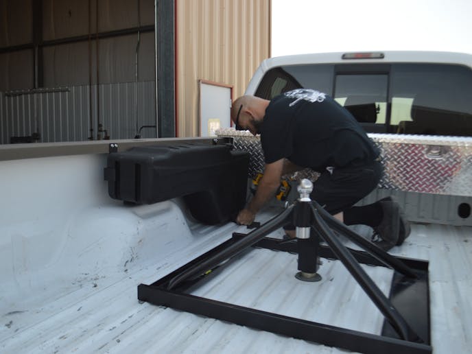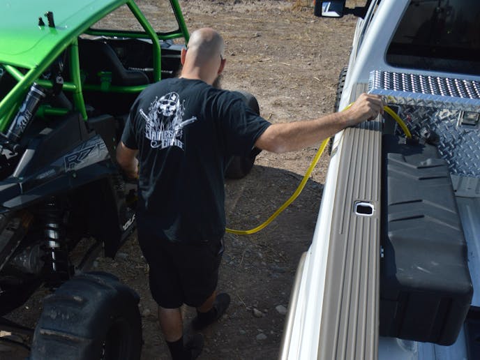 “The mounting of the SideKick allows you to put it in front of the wheelwells or behind; you can also mount up to four of them. The design makes it versatile for the racer. While we were in development of the tank we took into consideration that many racers tow a fifth-wheel trailer with their truck — the design of the tank allows use of any fifth-wheel hitch, and where it sits level, or below in some cases, with the top of the bedside, it will not interfere with the trailer itself in tight-turning situations.”
