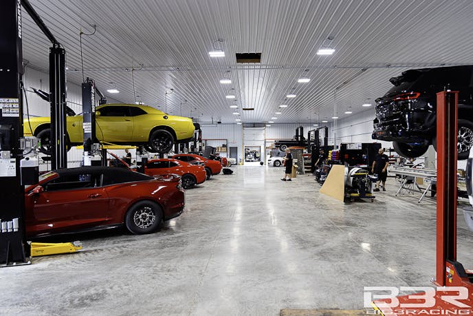 Inside the new shop, you’ll find a two-wheel-drive dyno, an all-wheel-drive dyno, and a 6,000-horsepower hub dyno. There’s also a dedicated area for custom fabrication work, parts sales, and, conveniently, a race track right next door. The shop specializes in building American muscle cars of all generations that are powered by V8 or V10 engines.
