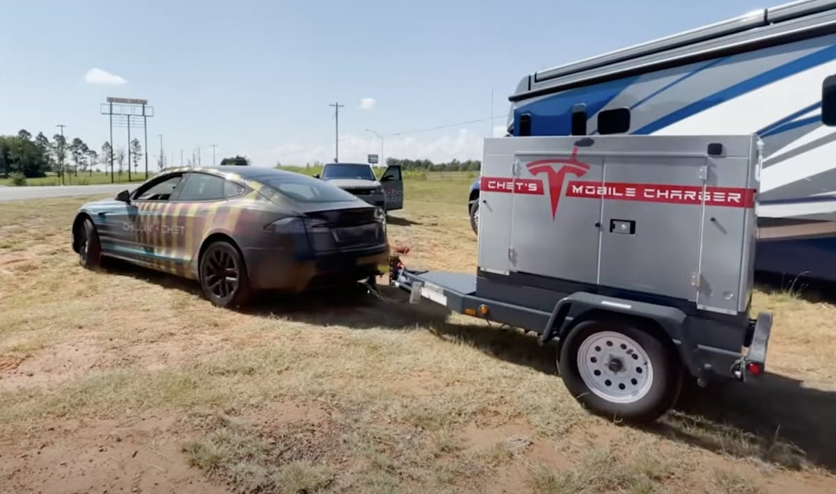 Cheyenne Lord, an Arizona businessman who goes by “Uncle Chet” on his “Chillin’ with Chet” YouTube page, embarked on a unique journey last week to complete Rocky Mountain Race Week 2.0 with a fully electric car. Chet had purchased one of Tesla’s Model S Plaid cars, a $130,000 sedan that is presently the world’s quickest production street car, and set out to prove it could be done. But again, the challenge was the availability of charging sources in rural Kansas, Oklahoma, and Texas — and so Chet sourced a large, three-phase mobile generator before the event to tow behind the nearly 8-second-capable family car. It was like a service station on wheels for the car with an advertised 390-mile range.