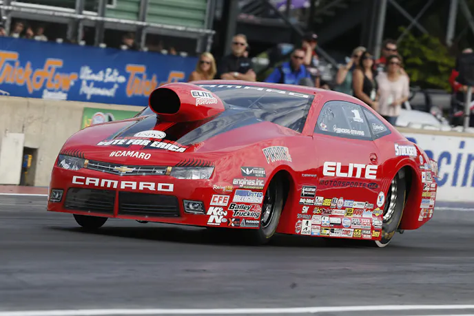 Flash forward to July 2015 — six NHRA Pro Stock event winners and six number one qualifier awards, ten NHRA Competition Eliminator event winners, five NHRA Super Stock event winners in the first half of the season. CFE also holds the NHRA Pro Stock National Elapsed Time and MPH Records with Erica Enders-Stevens’ 6.464 second blast at 215.55 miles per hour at Old Bridge Township Raceway Park in Englishtown, New Jersey in June 2014.