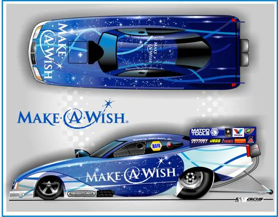 ”Having prominent placement on a DSR Funny Car is a marketing opportunity that has great appeal,” said David Williams, president and CEO of Make-A-Wish America. “We are grateful for the commitment of Terry Chandler and Don Schumacher to help us grant life-changing wishes to every eligible child.”