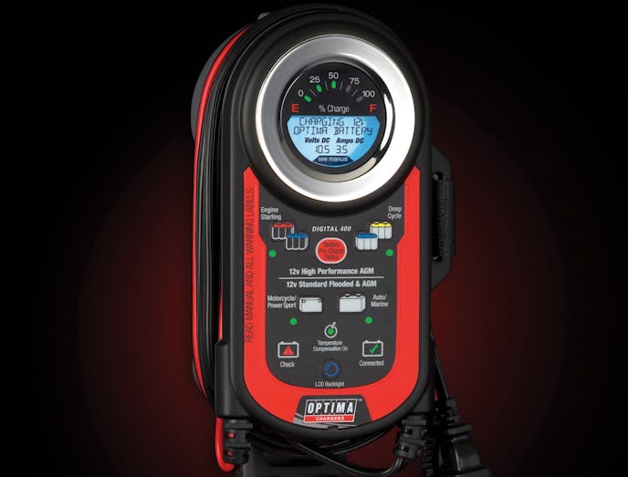 “Many newer battery chargers are microprocessor-controlled and collect information from the battery and adjust the voltage and amperage output accordingly like the OPTIMA Chargers Digital 1200 12V Performance Charger and Battery Maintainer. You also want to look for a charger with a de-sulfation mode to help condition your battery and keep it performing at its best. Also, don’t rely on your alternator to do the work of a charger. An alternator is meant to maintain a battery that is near a full state of charge, not recharging deeply-discharged batteries that just needed a jump from another battery.”