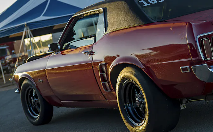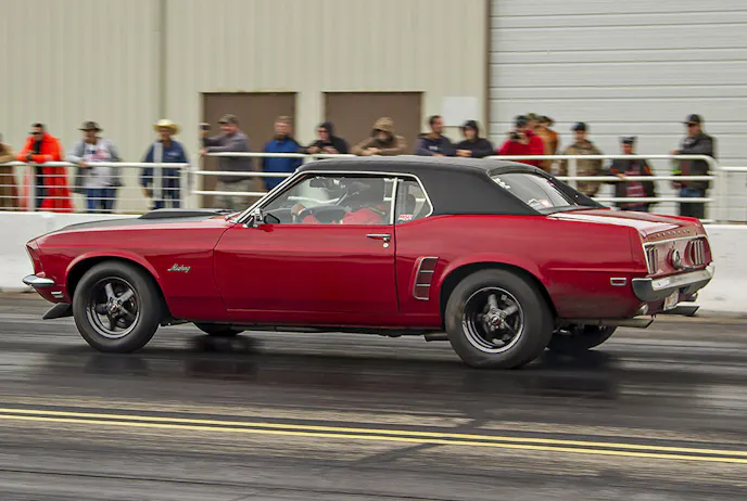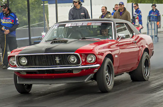 Last year, Guido drove his 1969 Mustang some 2,500 miles one way all the way from Grand Prairie, Alberta, Canada, to be a part of the Drag Week festivities in the midwest. The adventurous Guido got his gorgeous machine down into the 11.70’s early in the week, but found himself in a precarious situation on day three in St. Louis when he lost control of the car and struck both walls, damaging the bodywork, an upper control arm, and a ball joint. Determined to continue his quest to complete Drag Week — and make it back home without the help of a wrecker — he thrashed all night to repair the car, finished out the week, and then drove the car, which he aptly named the “Red Wreck”, 2,500 miles back home to northern Alberta.