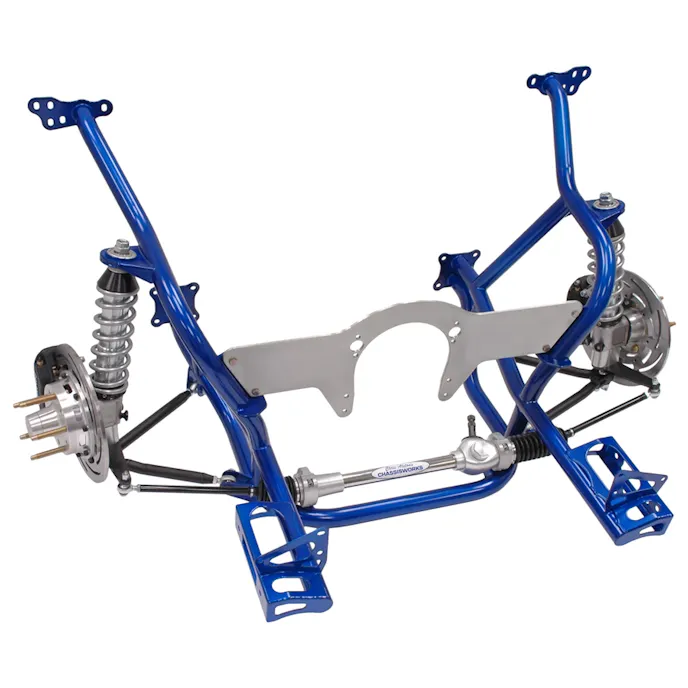Chassisworks has paired their 7702 clip on Comstock’s car with their double adjustable Varishock coilover struts and billet rack and pinion steering system. The big 632-inch mill from TRE engines is also secured to the car using Chassisworks’ standard big-block Chevrolet motor plates.