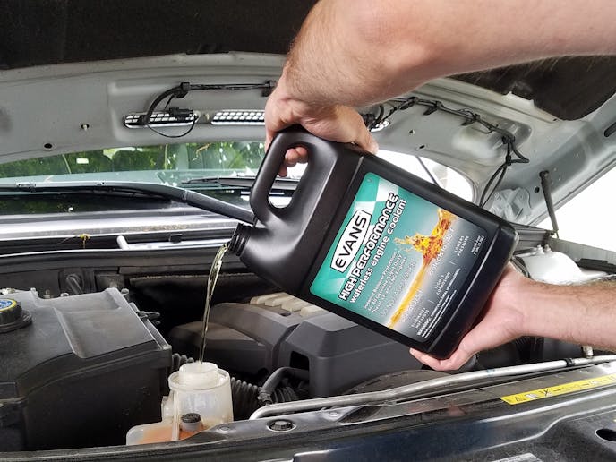 “With its boiling point of 375 degrees Fahrenheit, waterless coolant does not create water vapor, even at higher temperatures. This ensures efficient heat transfer – even at temperatures well past the failure point of water-based coolant,” Evans says. “As a result, cooling system pressure is much lower, avoiding coolant loss and boil-over. Waterless coolant remains stable and operates at a psi of about 2-4 pounds, relieving stress on hoses, seals, and gaskets. The result is no corrosion, no pressure, no boiling.”